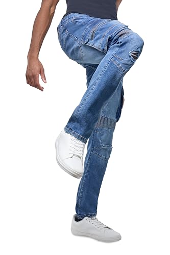 More information about RAW X Men's Stretch Ripped Cargo Pocket Jeans, Slim Fit Motor Biker Comfort Denim Jean Pants for Men
