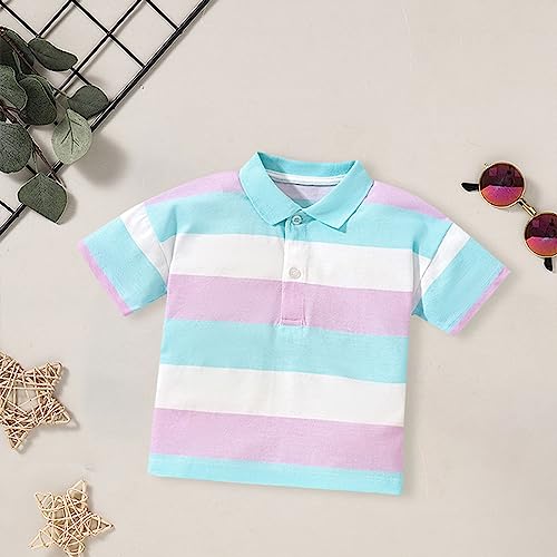Baby Colorful Striped Polo Shirt Little Boys Girls Short Sleeve School Uniform Button Down Collar Soft and Breathable 6