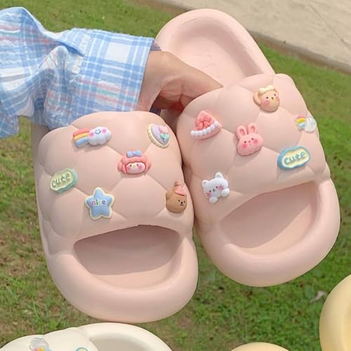 Cute Pillow Slippers for Women Sweet Pink Kawaii Thick Sandals Bathroom Open To Slides Non-Slip Shower Shoes 6