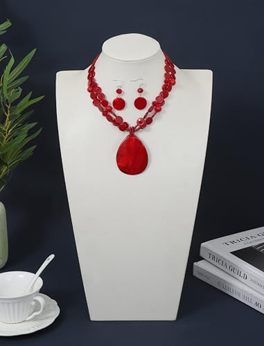 Big Teardrop Pendant Necklaces for Women Colorful Beaded Necklaces Statement Set for Holiday.