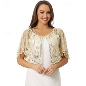 Women's 1920s Shawl Wraps Sequin Beaded Bridal Cover Up Evening Cape Flapper Bolero 10