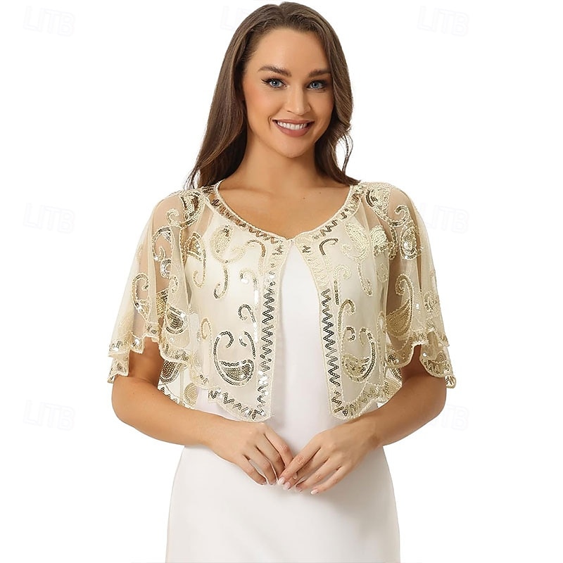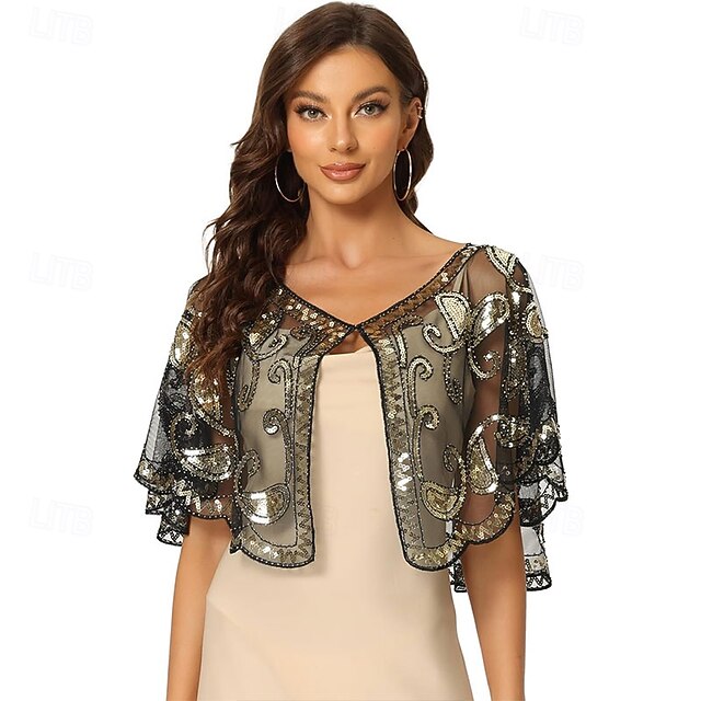 Women's 1920s Shawl Wraps Sequin Beaded Bridal Cover Up Evening Cape Flapper Bolero 1