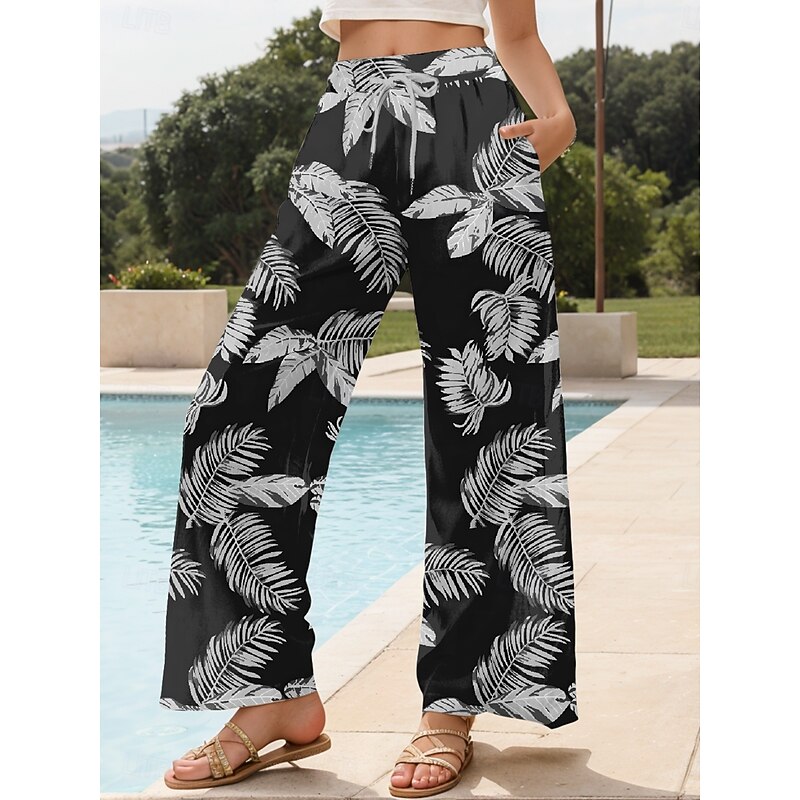 More information about Women's Culottes Wide Leg Wide Leg Chinos Vacation Vintage Fashion Full Length High Waist Graphic Leaf Elastic Waistband Printing Soft Breathable Micro-elastic Formal Vacation Street Buff Violet