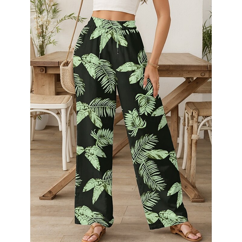 HOT ! Women's Culottes Wide Leg Wide Leg Chinos Vacation Vintage Fashion Full Length High Waist Graphic Leaf Elastic Waistband Printing Soft Breathable Micro-elastic Formal Vacation Street Buff Violet