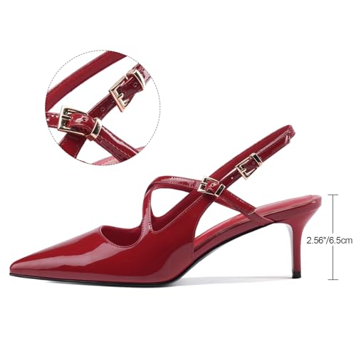 • [Heels Height] These slingback kitten heels feature a sturdy 2.36 inches/6 cm stiletto heels design. The stiletto heels for women provide outstanding stability and support. The slingback kitten heels can help you walk confidently and comfortably, reducing the risk of foot fatigue and discomfort, making them ideal for long workdays or casual outings