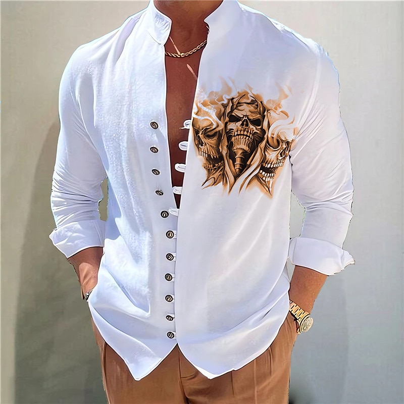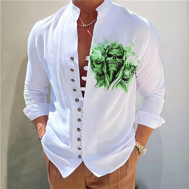 In collaboration with The Laundry Room we present a spectacular limited-edition Fayetteville AR men's shirt This piece features a skull graphic print a exclusive dark stand collar and is available in an array of colours It is fashioned from high-quality polyester boasting long sleeves with chunky cuffs and thumbholes providing comfort and ease for any occasion Tailored for a regular fit this shirt has micro-elastic properties ensuring a sophisticated comfortable casual and desirable look and a hand-dyed finish that makes each piece as unique as you are Suitable for all seasons