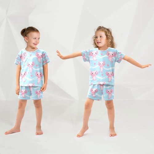 Pajama Sets Short Sleeve Cute Pink Axolotl Pattern Prints Soft Cotton Summer Sleepwear 2 Piece PJS Size 5-14T 6
