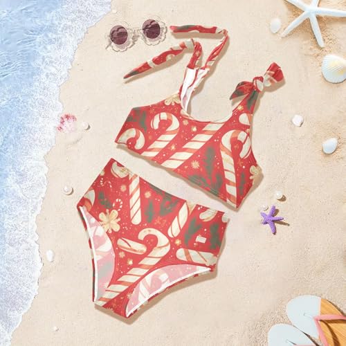 KLL Christmas Candy Cane Mistletoe Pattern Girls Two Piece Bikini Set Quick-Dry Swimsuit Swimming Suits Adjustable Strap 5