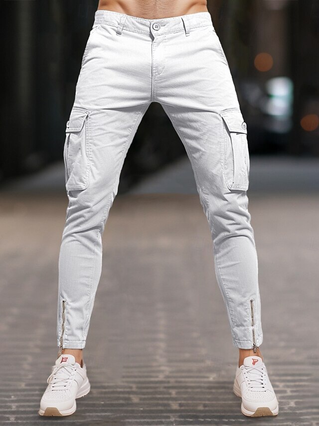More information about Men's Cargo Pants Trousers Chinos Summer Pants Casual Pants Zipper Plain Comfort Breathable Full Length Casual Daily Holiday Fashion Basic Black White Micro-elastic