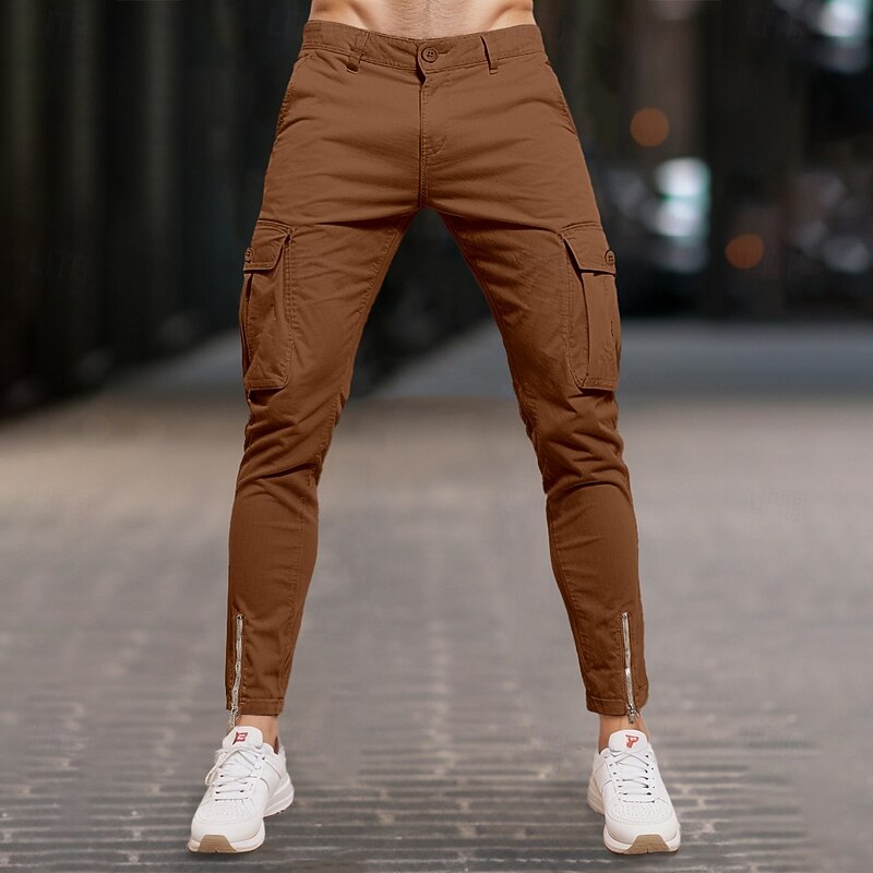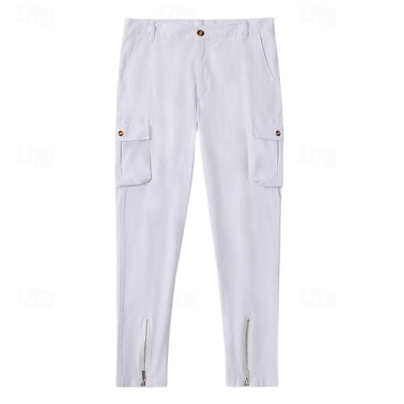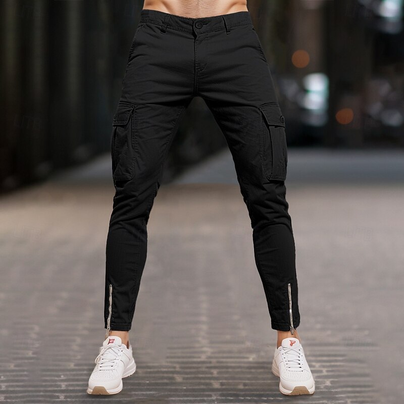 Highlights [Fabric] Crafted from a breathable cotton blend, these men's cargo pants offer both comfort and durability. The fabric’s micro-elasticity ensures ease of movement, making these pants ideal for active wear during the warmer spring and summer months. [Fit] Designed with a regular fit and a classic mid-rise waistline, the pants offer a streamlined silhouette. The tapered design adds a modern touch, making them versatile for various style preferences. [Design Highlights] Featuring functional cargo pockets on each side with flaps and button closures, these pants blend practicality with a trendy utility style. The addition of zippers at the ankles allows for a customized fit and adds a unique design element, making them stand out in any casual ensemble. [Occasions] These pants are perfect for everyday wear, whether for casual outings or holiday activities. Pair them with sneakers and a casual top for a relaxed look suitable for both daily and outdoor events. [Size Range] Available in a variety of sizes, from S to 3XL, accommodating a range of body types and ensuring an inclusive fit for many customers.