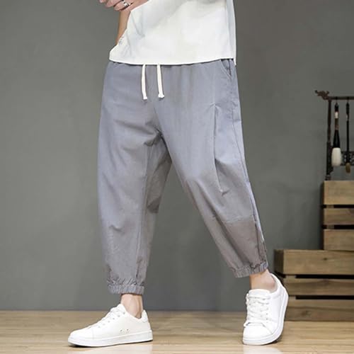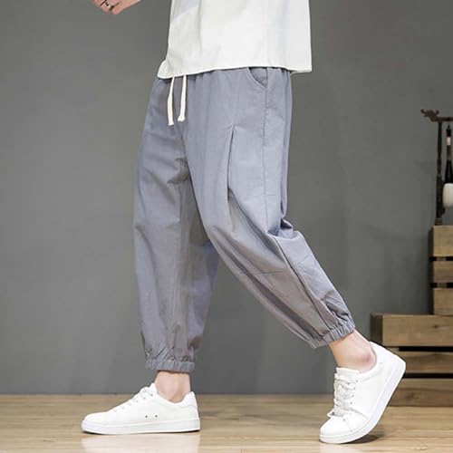 Mens Harem Pants with Pockets Linen Men Hip Hop Beach Yoga Toji Summer Baggy Trouser Casual Comfy Wide-Leg Trousers 5