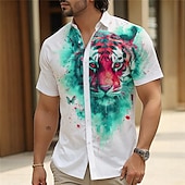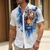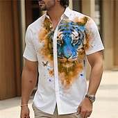 More information about Men's Tiger Button Up Shirt Short Sleeve Vacation Hawaiian Resort Style Outdoor Casual Daily Summer All Seasons Button Up 3D Print Yellow Blue Green