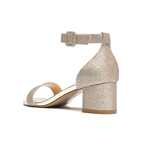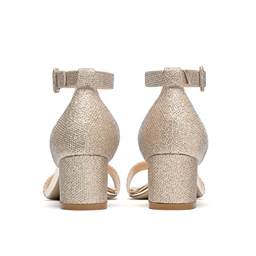 Eldof Women's Two Piece Sandals Chunky Mid Block Heel Open Toe Adjustable Ankle Strap 2.1 Inch Pump Heeled Sandals For Dress Wedding Ladies Shoes 2