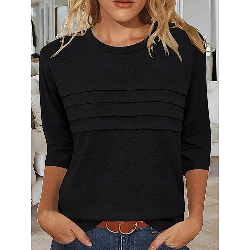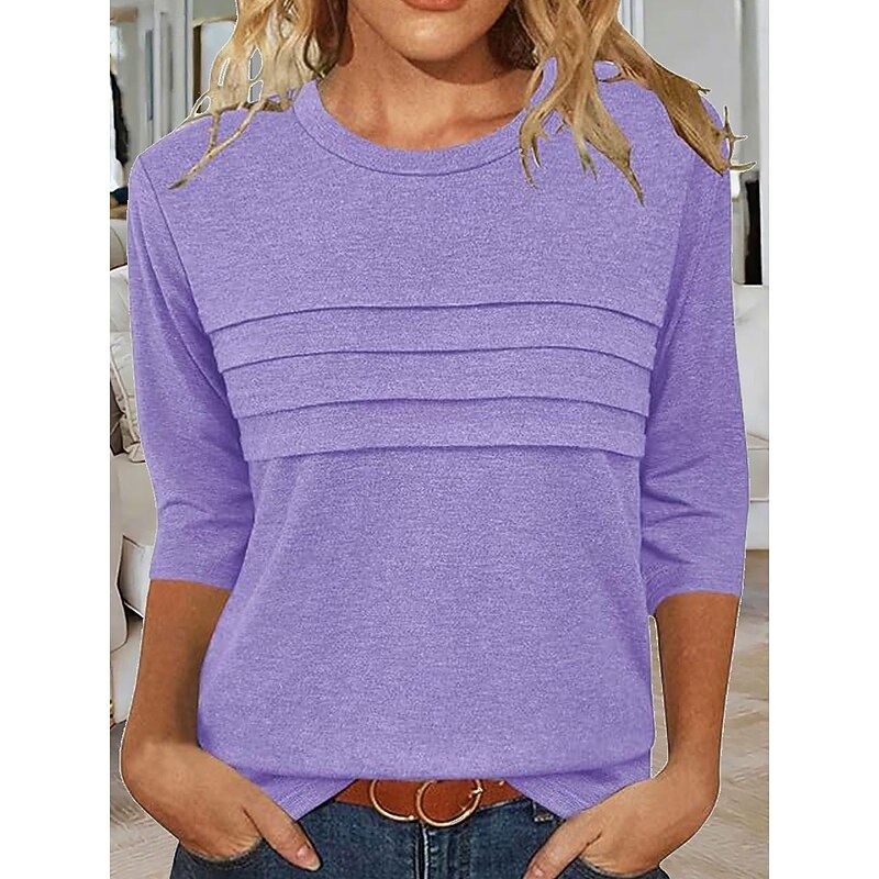 More information about Women's Blouse Solid Color Elegant Vintage Stylish Long Sleeve Crew Neck Regular Tops Daily Black Pink Blue Purple Rose Pink Summer Spring Fall