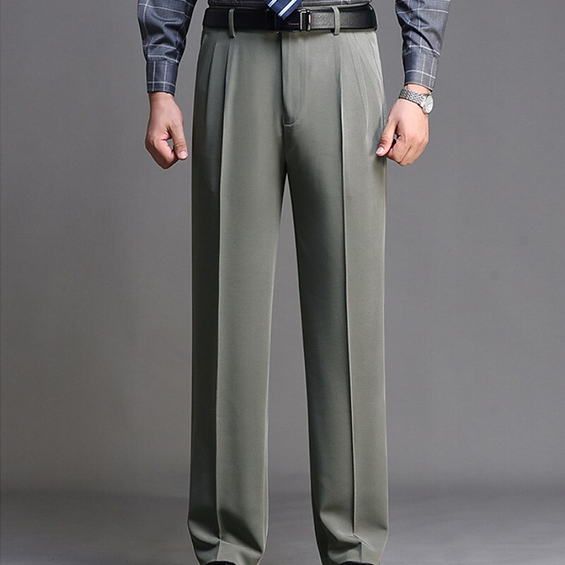 More information about Men's Dress Pants Trousers Chinos Pleated Pants Pocket Straight Leg Plain Breathable Soft Wedding Office Business Chic & Modern Classic Gray Green Black High Waist Micro-elastic