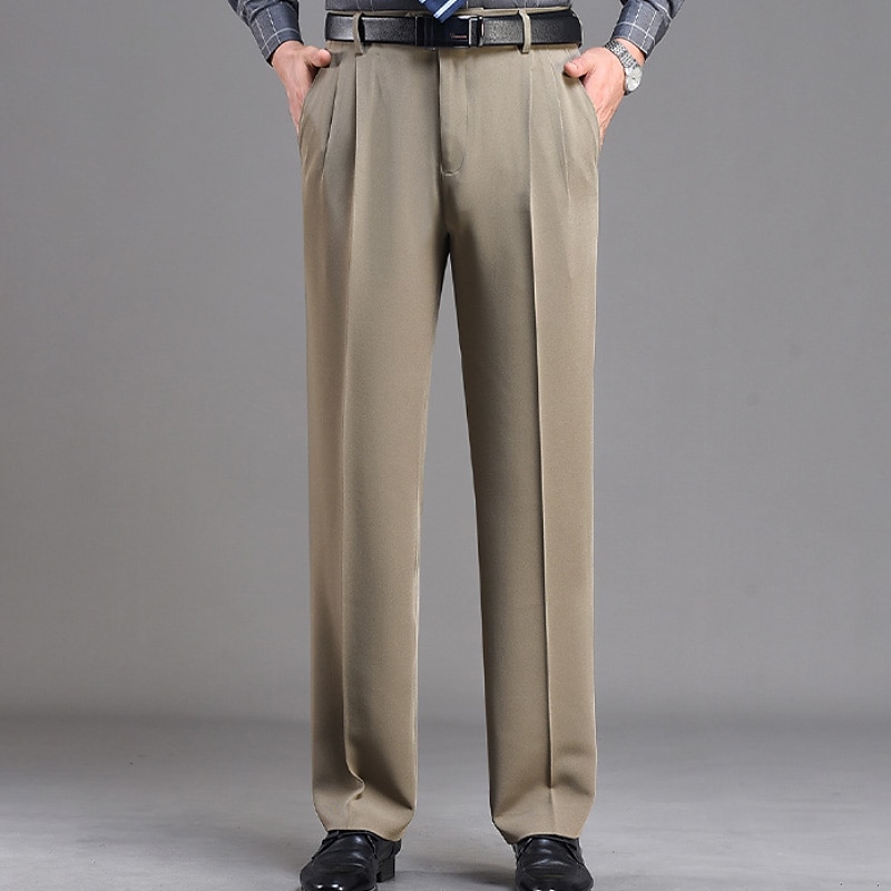 Men's Dress Pants Trousers Chinos Pleated Pants Pocket Straight Leg Plain Breathable Soft Wedding Office Business Chic & Modern Classic Gray Green Black High Waist Micro-elastic 18
