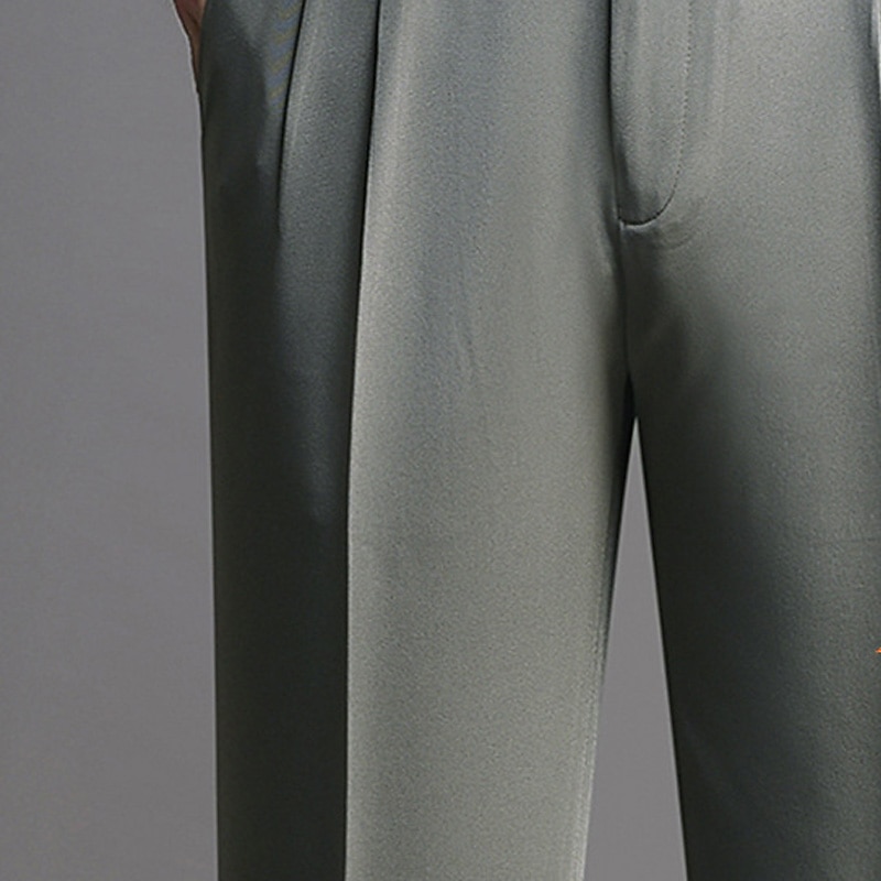 Men's Dress Pants Trousers Chinos Pleated Pants Pocket Straight Leg Plain Breathable Soft Wedding Office Business Chic & Modern Classic Gray Green Black High Waist Micro-elastic 2