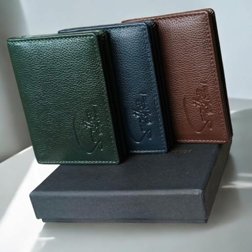 HOT ! Slim RFID Protected Leather Card Holder Wallet, 4 Card Slots, Bi-Fold Design, Redwood Brown Blue Green (Blue)
