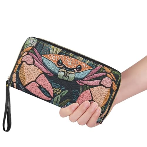 HOT ! Novelty Long Wallet for Women Crab Zipper Wallet with Wristlet Pu Leather Purse for Women Large Capacity Credit Card Holder with Grip Hand Strap