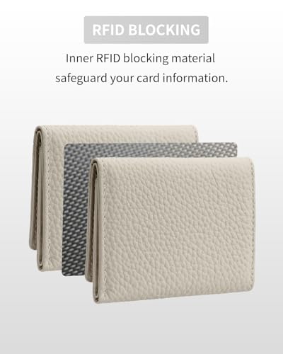 RFID Small Leather Wallet for Women with Cash Coin and Card Holders Compact Minimalist Pocket Wallet for Daily or Travel White (Beige) 6