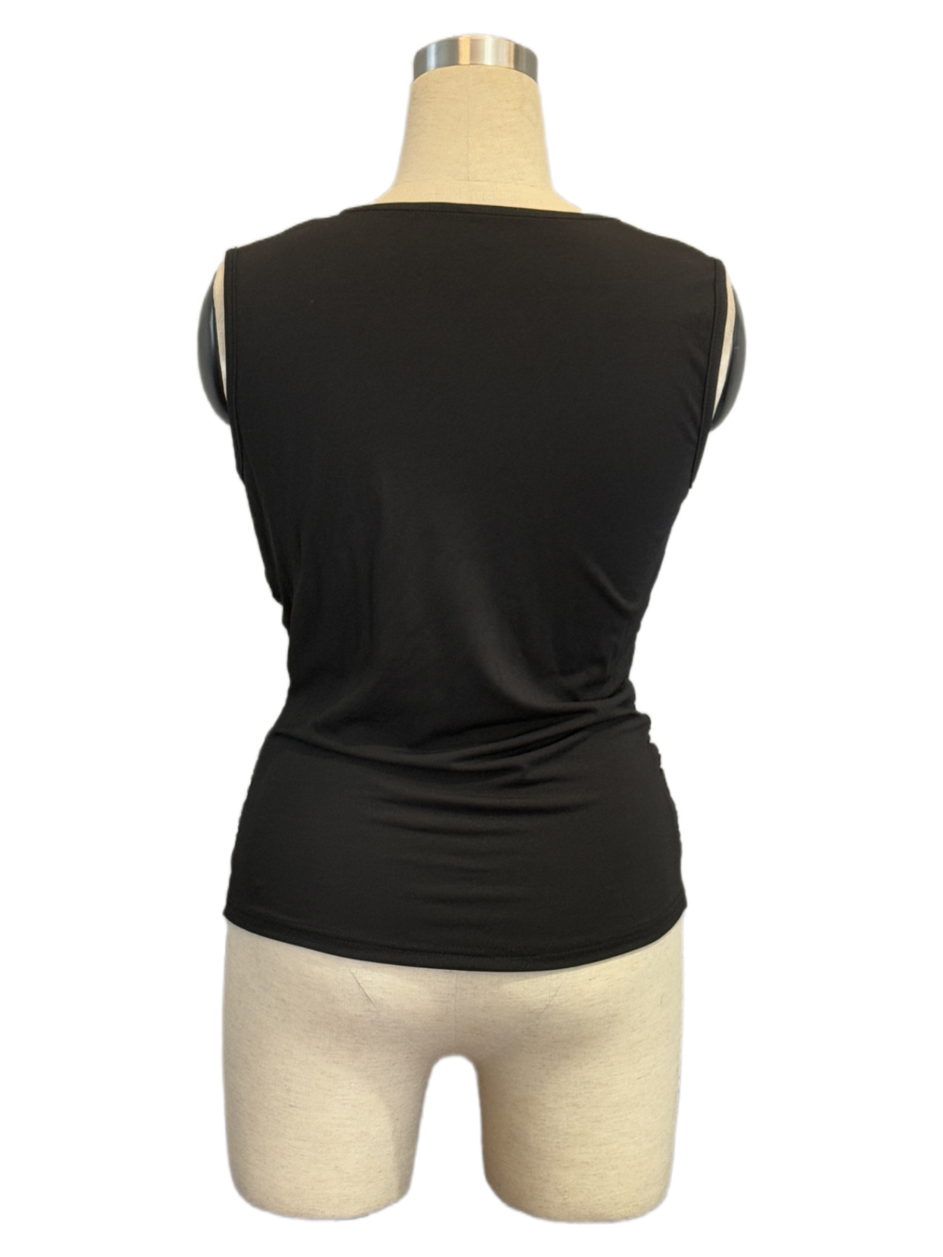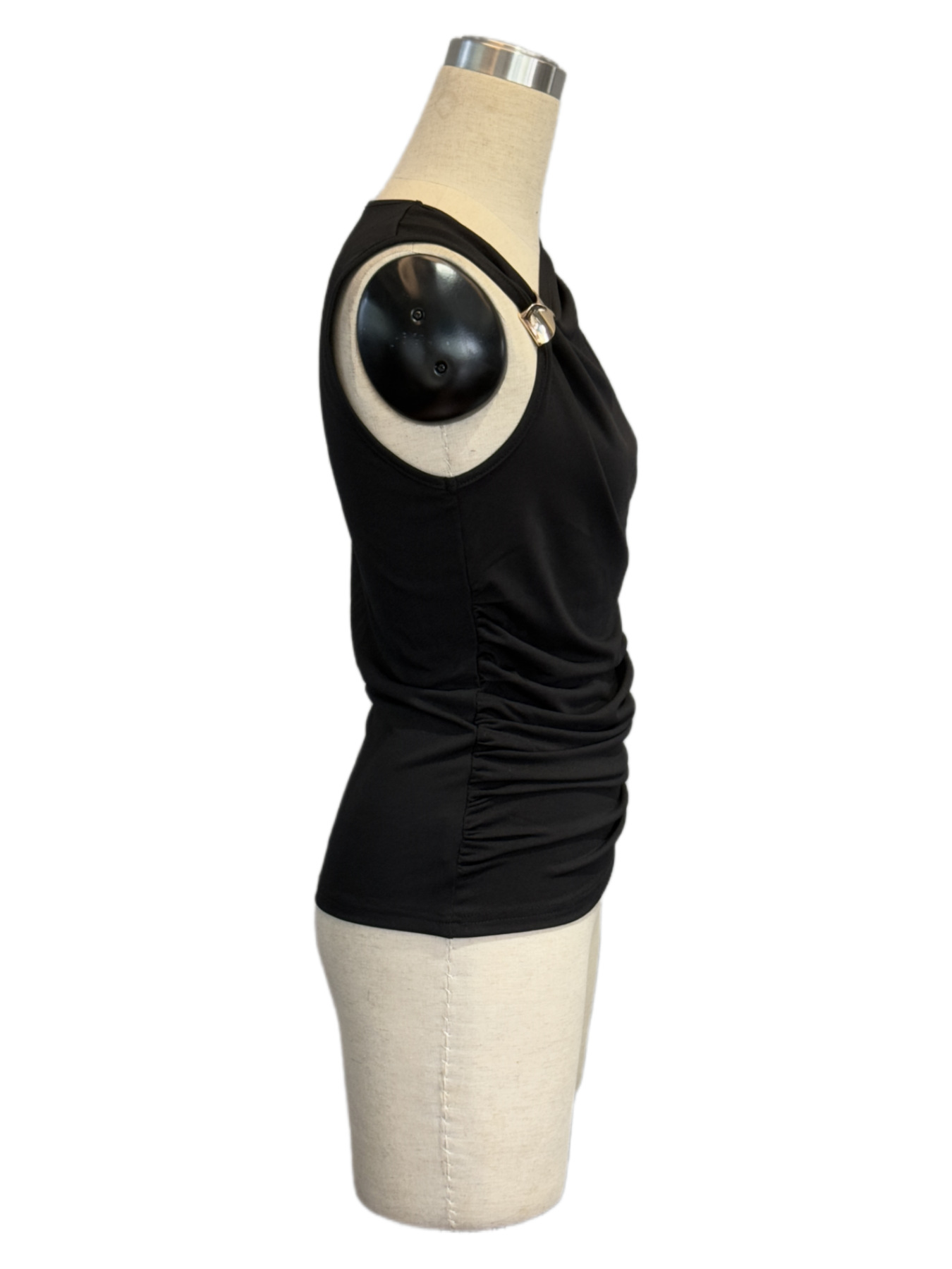 Pattern: Solid ColorPart Number: A1239Fabric name: PolyesterColor: BlackProduct Category: T-shirtSleeve Type: SleevelessMain fabric composition: polyester (polyester fiber)Size: S, M, L, XL, XXLVersion: Slim fitLength: Ordinary (50cm < Length ≤ 65cm)Main fabric composition content: 95% and aboveStyle Type: Temperament CommuterCross-border style type: elegant temperamentMain fabric composition 2: spandexListing Year/Season: Summer 2025Collar type: diagonal collarSleeve Length: SleevelessPopular elements: metal decorationStyle: PulloverStyle: Elegant styleCraft: Pleating?