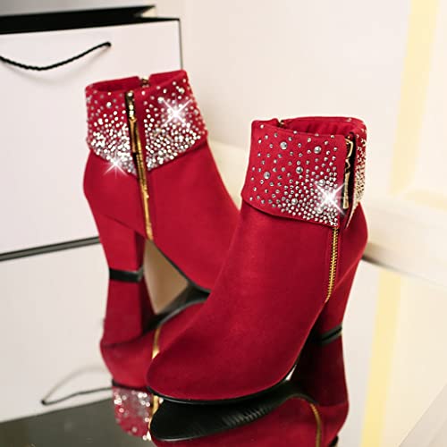 More information about MIOKE Women's Chunky Block High Heel Ankle Boots Rhinestone Round Toe Suede Zipper Bootie Dress Short Boots