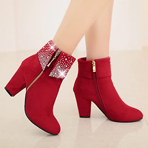sought-after ! MIOKE Women's Chunky Block High Heel Ankle Boots Rhinestone Round Toe Suede Zipper Bootie Dress Short Boots