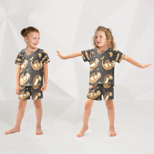 Moon Night Sloth Kids Pjs Set Boys Girls Summer Short-Sleeve Sleepwear Pajamas 2PCS 4