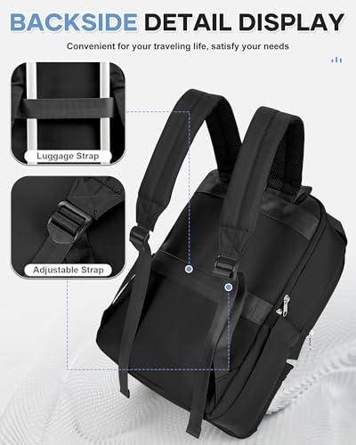 wepadre Black Travel Backpack For Women Men Airline Approved Carry On Bags For Airplanes Personal Item Bag For Airlines Waterproof Hiking Backpack College Laptop Backpack Weekender Overnight Bag 4