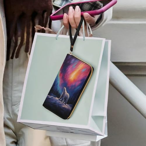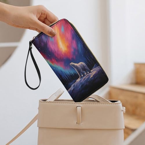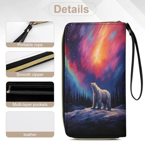 HOT ! Aurora Polar Bear Women's Wallet Wristlet Zipper Purse with Hand Strap Travel Credit Card Holder for Daily Use Gifts