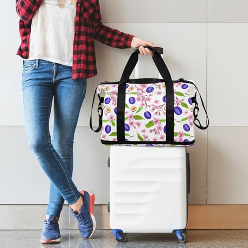 HOT ! Blossom Fruit White Travel Duffel Bag for Women Men Gym Bag with Shoe Compartment Wet Pocket Carry On Weekender Overnight Bags for Travel Gym Yoga School