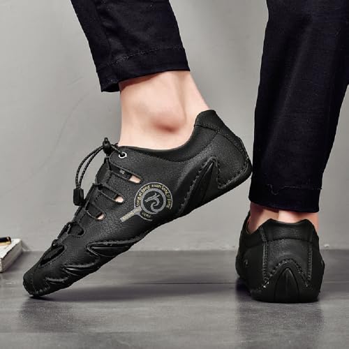 • QUALITY MATERIAL: This men's closed toe sandals are made of high quality leather with elastic fabric and breathable holes, soft and comfortable texture, good breathability, not stuffy feet
