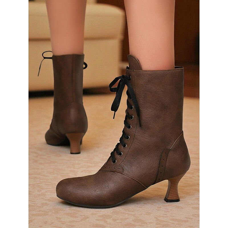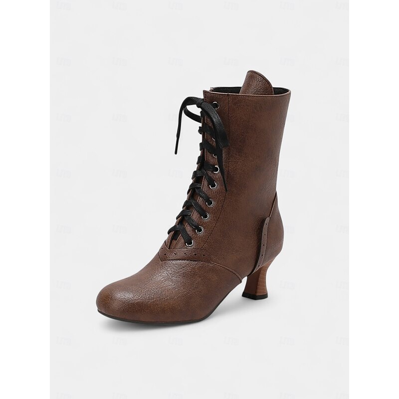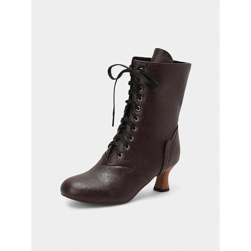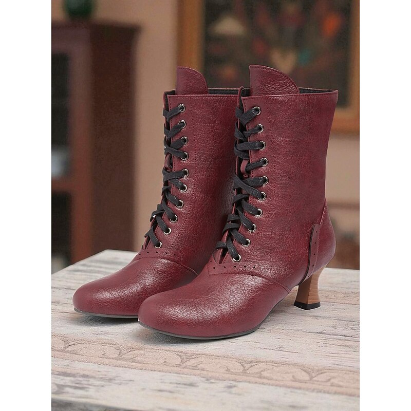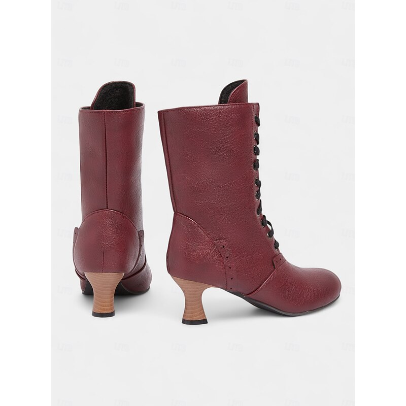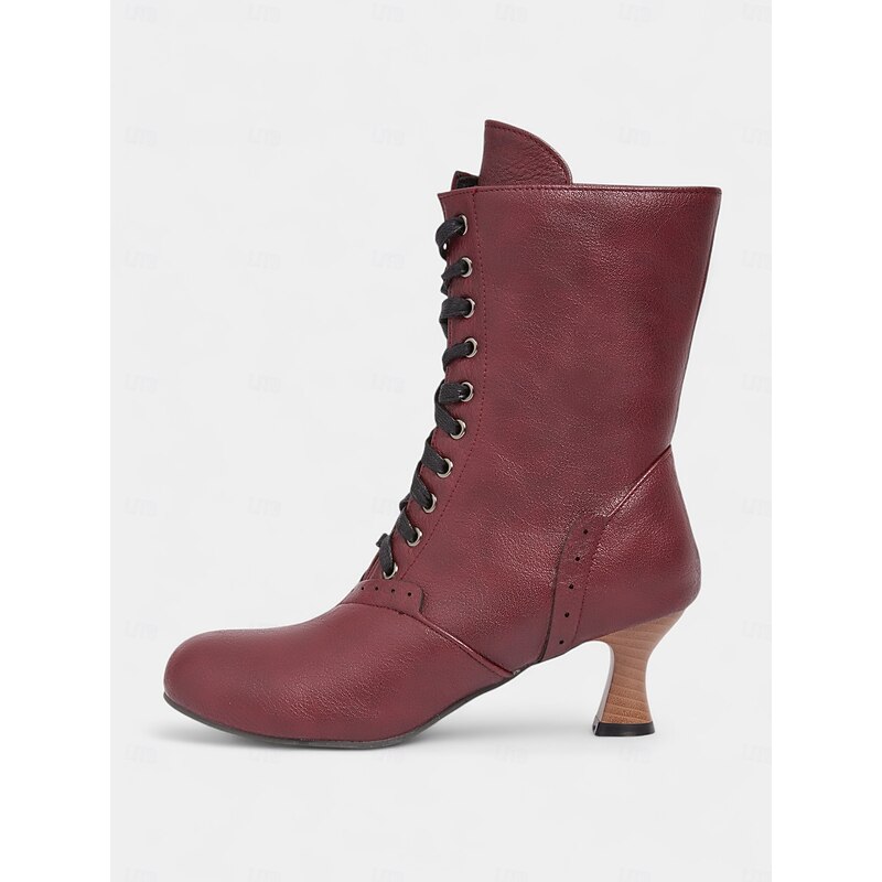 Women's 1950s Brogue Lace-Up Ankle Boots – Vintage Burgundy Leather Low Heel Retro Booties for Elegant Daily, Cosplay and Formal Party Wear 24