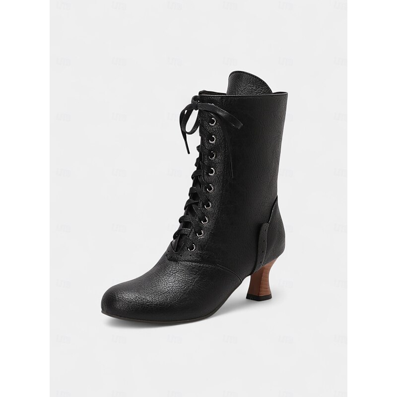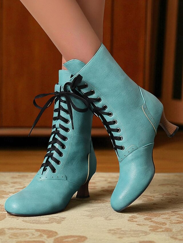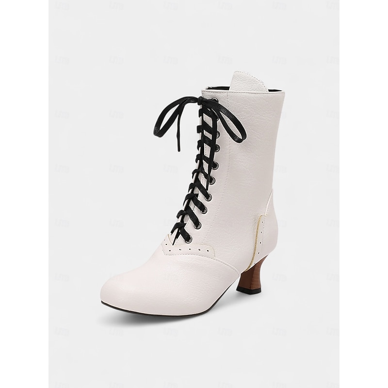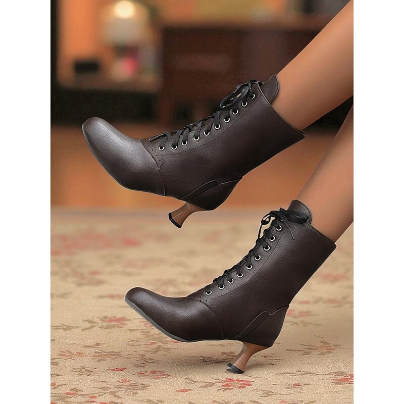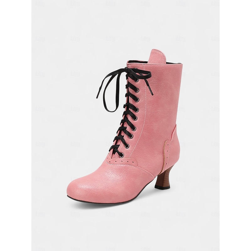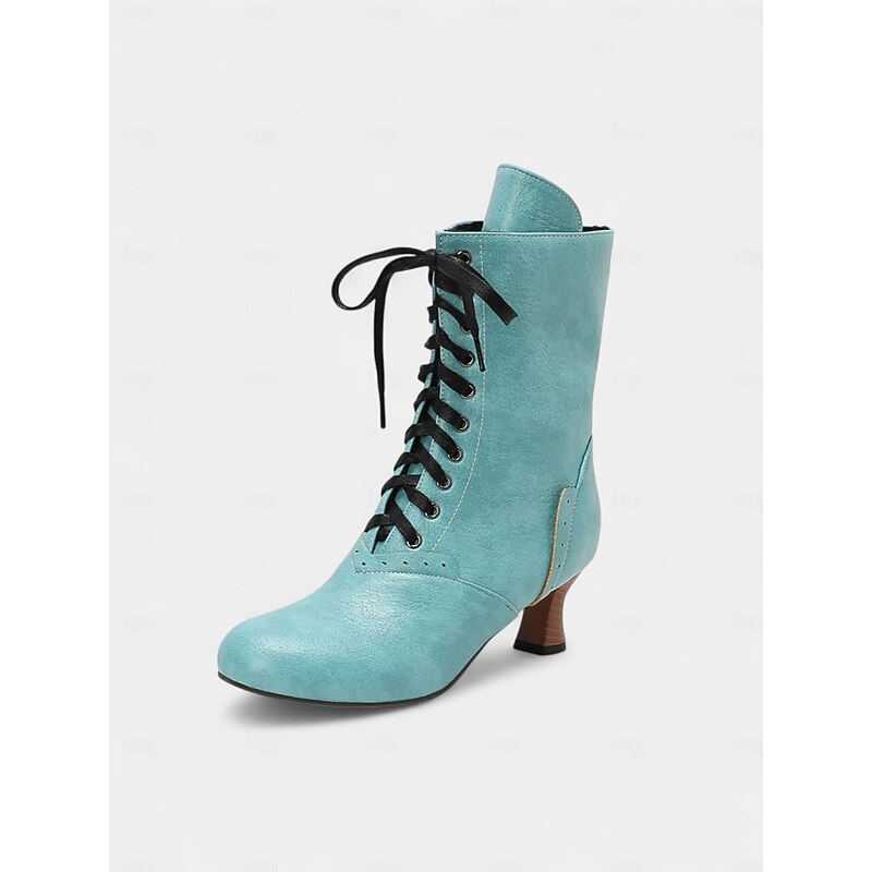 Women's 1950s Brogue Lace-Up Ankle Boots – Vintage Burgundy Leather Low Heel Retro Booties for Elegant Daily, Cosplay and Formal Party Wear 24