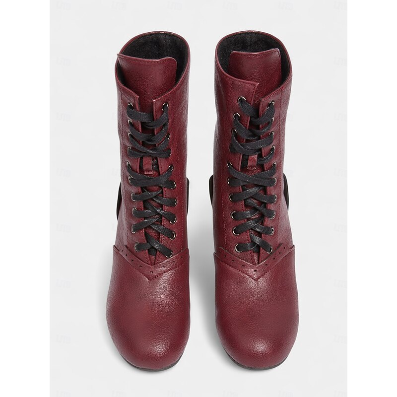 Women's 1950s Brogue Lace-Up Ankle Boots – Vintage Burgundy Leather Low Heel Retro Booties for Elegant Daily, Cosplay and Formal Party Wear 27