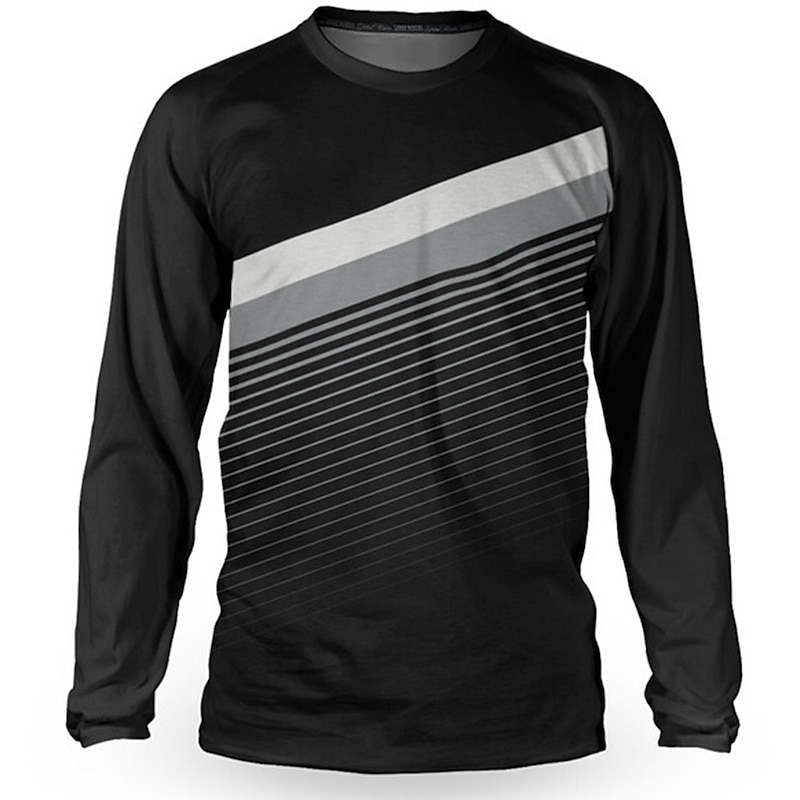 HOT ! Men's Cycling Jersey Downhill Jersey Dirt Bike Jersey Solid Color Patchwork Patterned Long Sleeve Bike Jersey Top with 3 Rear Pockets Mountain Bike MTB Road Bike Cycling UV Resistant Quick Dry Back