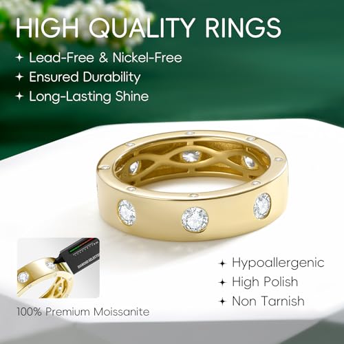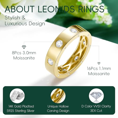 LEONIDS Dainty Eternity Wedding Rings for Women | Moissanite or Lab Grown Emerald 925 Sterling Silver 14K Gold Plated Stackable Band Non Tarnish | Birthday Jewelry Gifts for Her Size 4-10