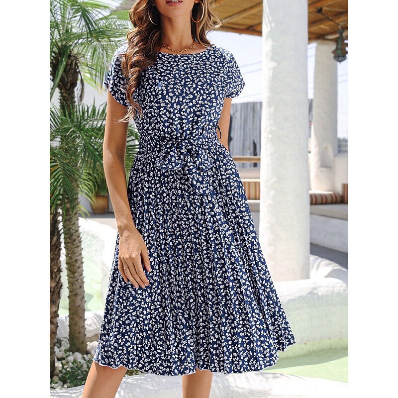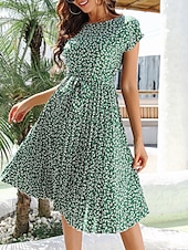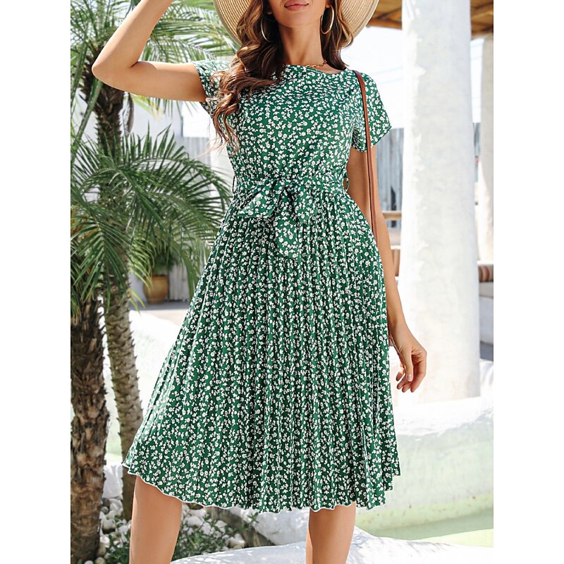 More information about Women's Midi Dress Casual Dress A Line Dress Stylish Casual Vacation Daily Regular Fit Floral Short Sleeve Crew Neck Green Light Blue Summer