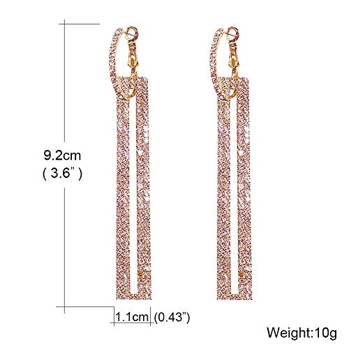 Item width: 0.43 inchesMaterial: CrystalMetal type: AlloyBack Finding: Lever BackEarring design: DangleGem type: Cubic ZirconiaLength: 3.6 inch (9.2 cm), Width: 0.43 inch (1.1cm). This rose gold plated earrings is relatively long, if you don't like long earrings, it may not be suitable for you.BRILLIANT CRYSTAL: This long rectangle geometric earrings is distinctive, Brilliant, Elegant. Full Paved tiny shiny Rhinestone. Keep you shimmering pretty and never go out of stylePREMIUM QUALITY: This dangling earrings for women is rose gold plated. 3 Layers plating is to ensure a very long lasting brilliant finish. Hypoallergenic 925 Sterling Silver post, Nickel free and Lead freeTHE PERFECT GIFT: The dainty gold earrings for women packed with a velvet bag. Whether its Wedding, Engagement, Party, Prom, Daily wear, or just because, the gold earings is always the best choice. Ensure a nice smile on your loved ones face, this is an bright ideal purchase for Christmas, Hannukah, Mothers' Day, Valentines' Day, anniversary, Birthday, or your BridesmaidsAFTER SALES SERVICE: If you encounter size or quality problems when using these rose gold drop earrings, please don't worry and contact with us Perfect for everyday use. excellent materials and excellent craftsmanship ensure long-lasting durability.