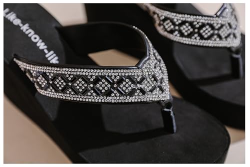 Rhinestone Wedge Sandals for Women Platform Flip Flops Wedge flip flops Wedding shoes Wedge Heels for Women Dressy 6