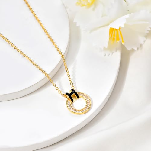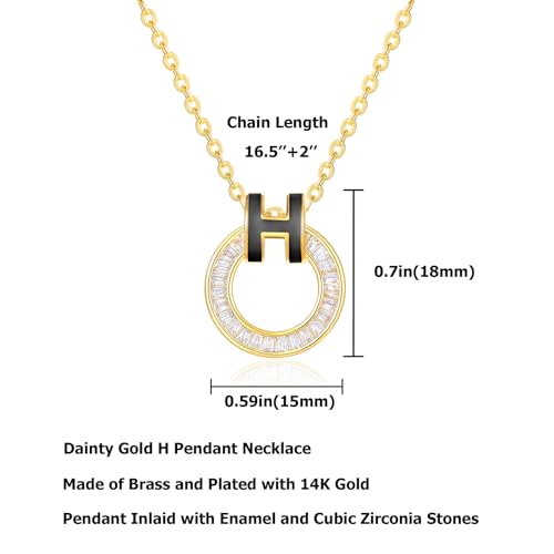 • 14K Gold Necklace Material: These gold pendant necklaces are made of brass and plated with 14K gold.This Gold Necklace for Women features a stunning H Pendant inlaid with enamel and cubic stones