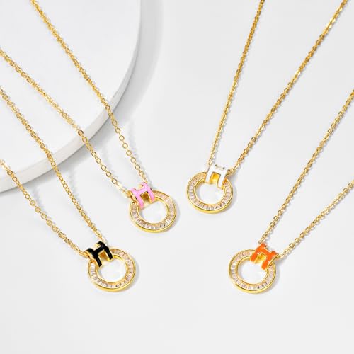 HOT ! Gold Necklace for Women Dainty Gold Necklace H Enamel Pendtant Necklace Christmas Mothers Day Gifts for Women