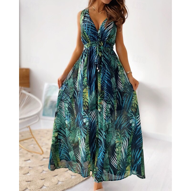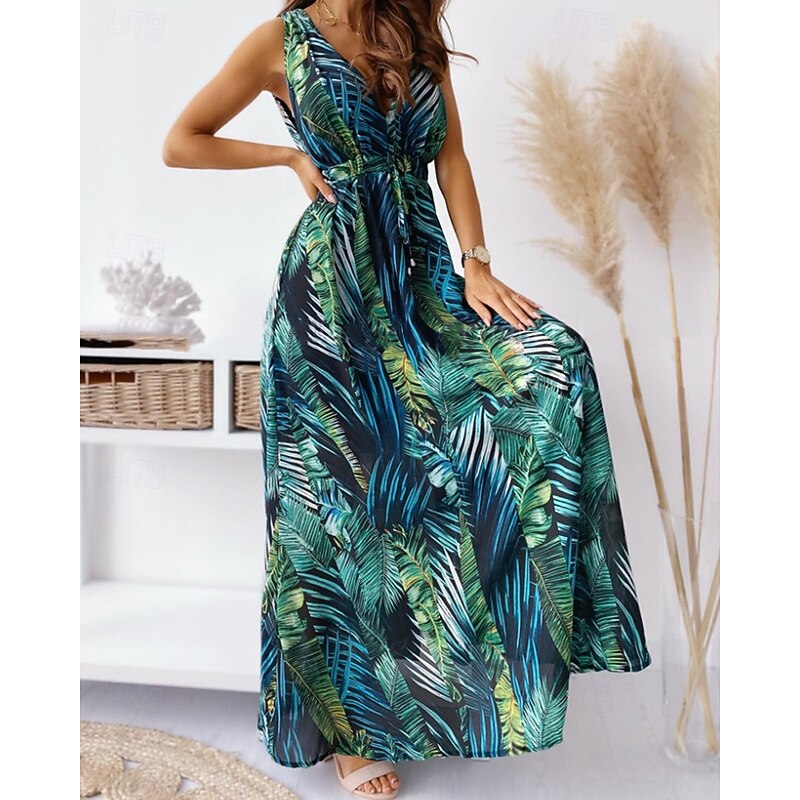 HOT ! Women's Long Dress Maxi Dress Floral Dress Print Dress Fashion Modern Outdoor Vacation Holiday Regular Fit Flower Sleeveless V Neck Black White Green Summer