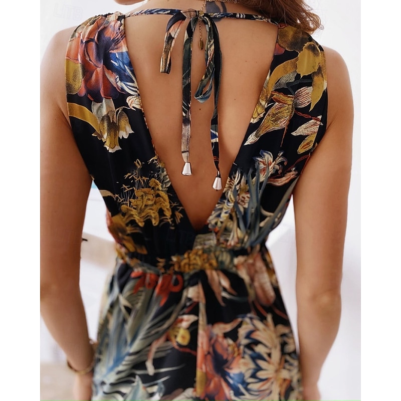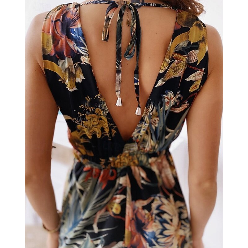 Women's Long Dress Maxi Dress Floral Dress Print Dress Fashion Modern Outdoor Vacation Holiday Regular Fit Flower Sleeveless V Neck Black White Green Summer 11