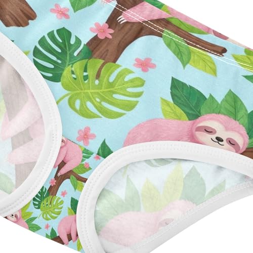 Cute Pink Sloths Green Leaves Toddler Cotton Underwear, Girls Underwear Cotton, 2T–8 Years