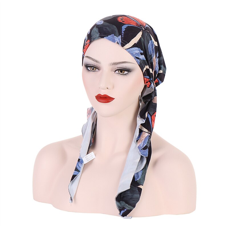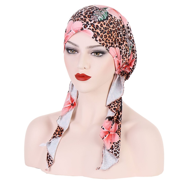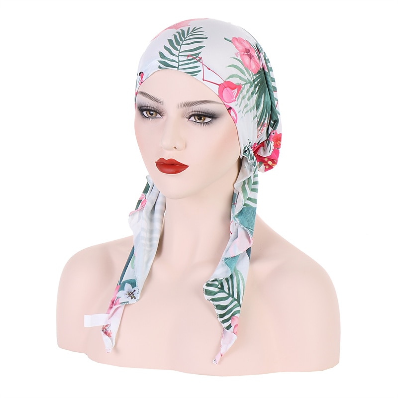 More information about Women Printed Pre-tie Headscarf Elastic Muslim Female Turban Soft Hat Hair Loss Cover Head Wrap Headwear Stretch Bandana