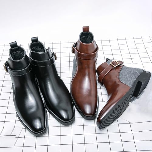 Men's Pointed Toe Slip on Chelsea Boots,Classic Leather Stitching Adjustment Buckle Retro High-top Dress Shoes Ankle Boots 6
