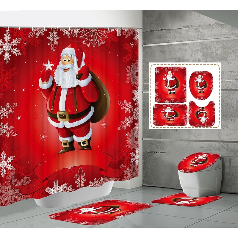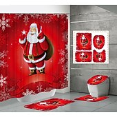 $23.99 - Bathroom Red Santa Claus Shower Curtain, Christmas Holiday Winter Bathroom Decor Toilet Lid Mat, Non-Slip Bathroom Rug, Toilet U-Shape Mat, Toilet Lid Cover Pad, With 12 Hooks, Christmas Decorations 2025. Shop for cheap Christmas Bath online? Buy at lightinthebox.com on sale today!
