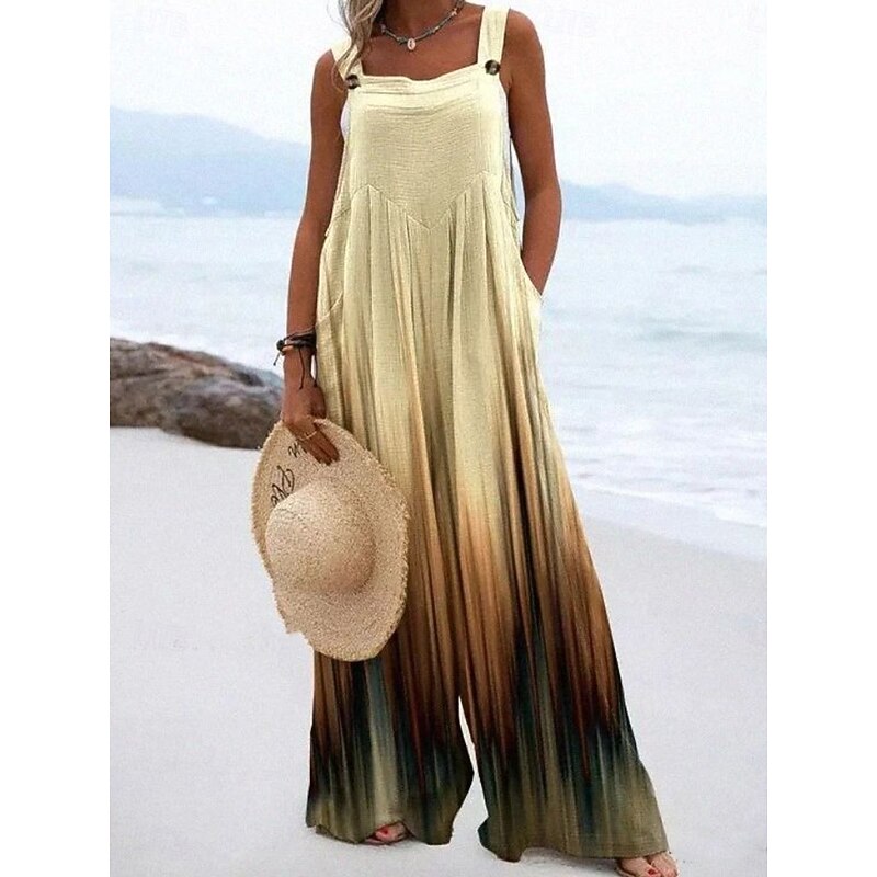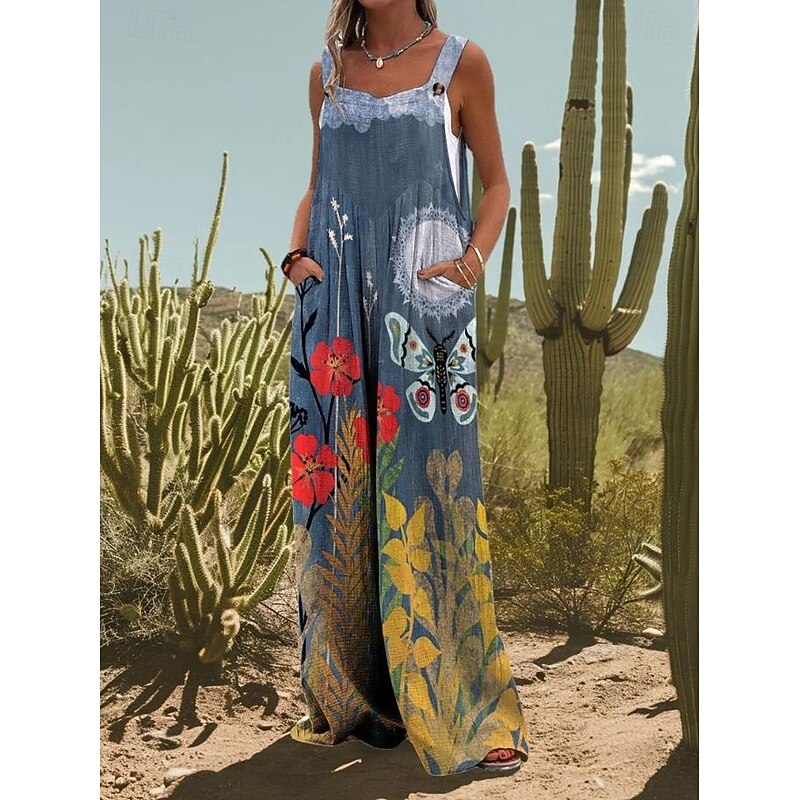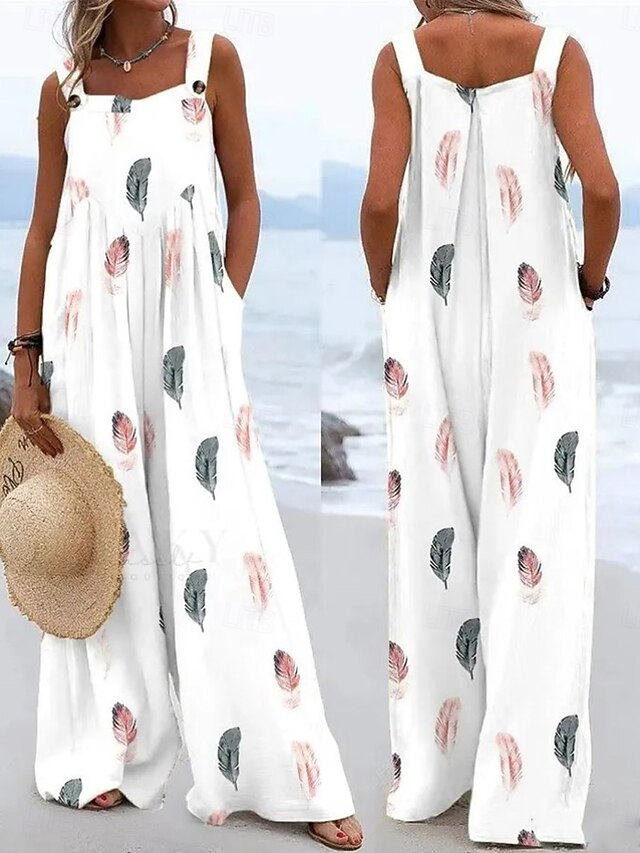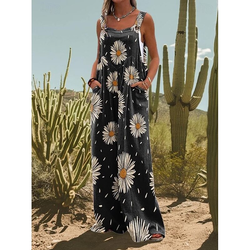 HOT ! Women's Linen-Inspired Sets Active Floral Sleeveless Wide Leg Vacation Home Loose Fit Black White Yellow Summer