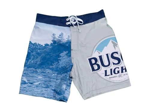• Officially Licensed Busch Light Apparel: Authentic boardshorts featuring the iconic Busch Light logo and mountain range design, perfect for beer enthusiasts.